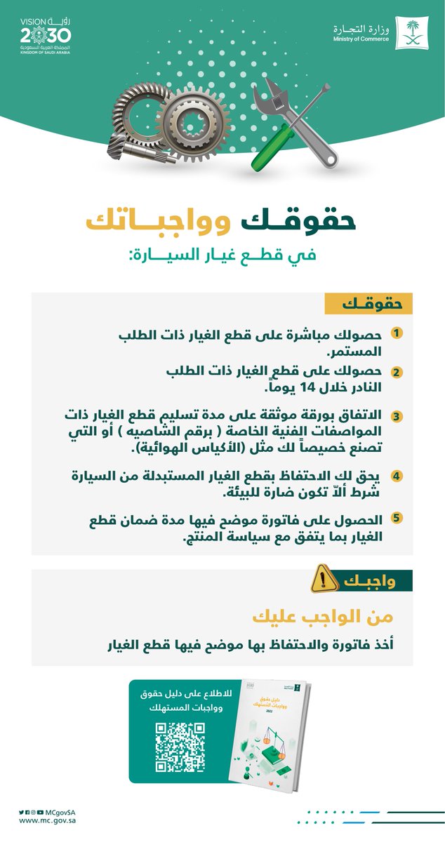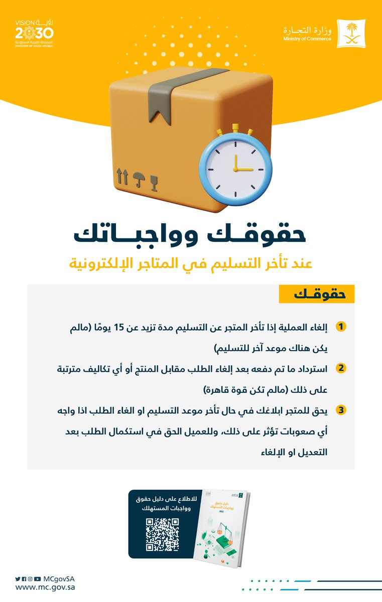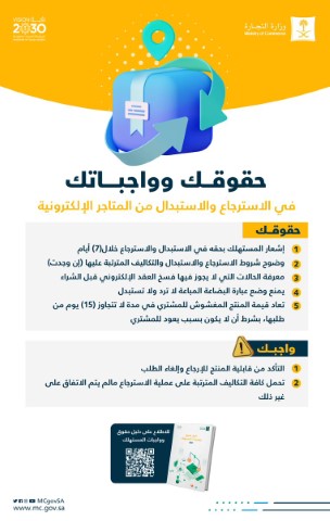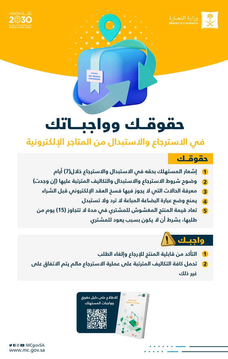 حقوق وواجبات المستهلك حقوق المستهلك الثمانية حقوقك وواجباتك في صوالين الحلاقة حقوقك وواجباتك عند شراء الأجهزة الكهربائية حقوقك وواجباتك في قطع غيار الأجهزة الكهربائية حقوقك وواجباتك في ضمان الأجهزة الكهربائية حقوقك وواجباتك عند شراء سيارة جديدة حقوقك وواجباتك عند صيانة السيارة حقوقك وواجباتك في قطع غيار السيارة حقوقك وواجباتك في التسوق الإلكتروني حقوقك وواجباتك في الإسترجاع والاستبدال من المتاجر الإلكترونية حقوقك وواجباتك عند تأخر التسليم في المتاجر الإلكترونية محتوى الصفحة آخر تعديل 10 ذو القعدة 1444 تقييم المحتوى عدد الأصوات: 8 شارك علىMC