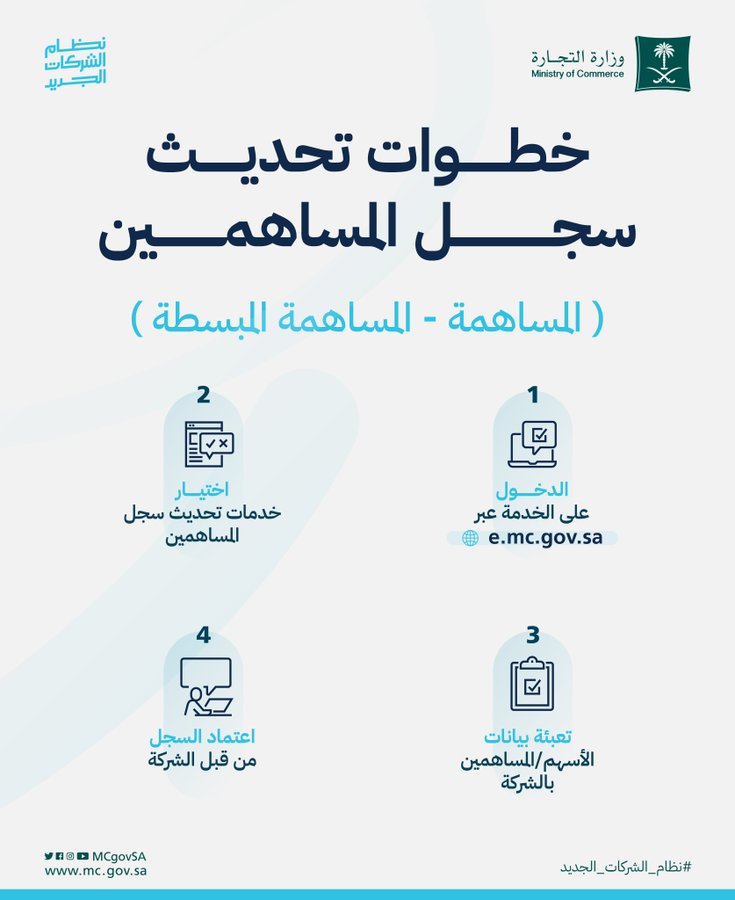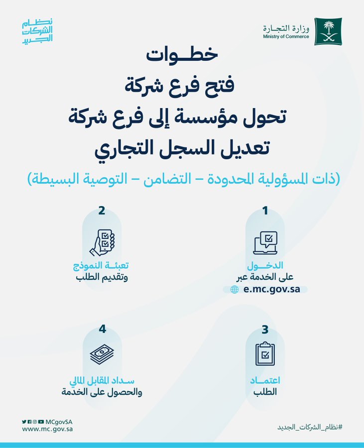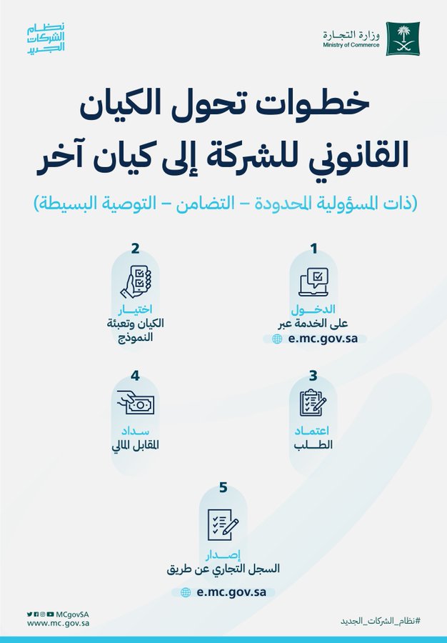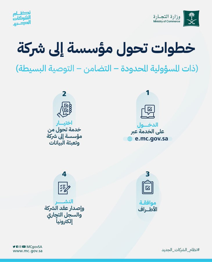 خدمات نظام الشركات أسس شركتك الجديدة الآن خدمة تأسيس شركة خدمة تحول مؤسسة إلى شركة خطوات تحول مؤسسة إلى شركة خطوات فتح فرع شركة خدمة تعديل عقود الشركات خدمة تعديل أوضاع الشركة خطوات تحول الكيان القانوني إلى شركة خطوات تحول الكيان القانوني للشركة إلى كيان آخر خطوات تحديث سجل المساهمين خطوات نشر قرارات الجمعيات غير العادية خطوات إحاطة الوزارة بالجمعية العامة خطوات تصفية الشركة خطوات شطب السجل التجاري لشركة أنجز خدمات شركتك إلكترونياً محتوى الصفحة آخر تعديل 10 ذو القعدة 1444 تقييم المحتوى عدد الأصوات: 14 شارك علىMC
